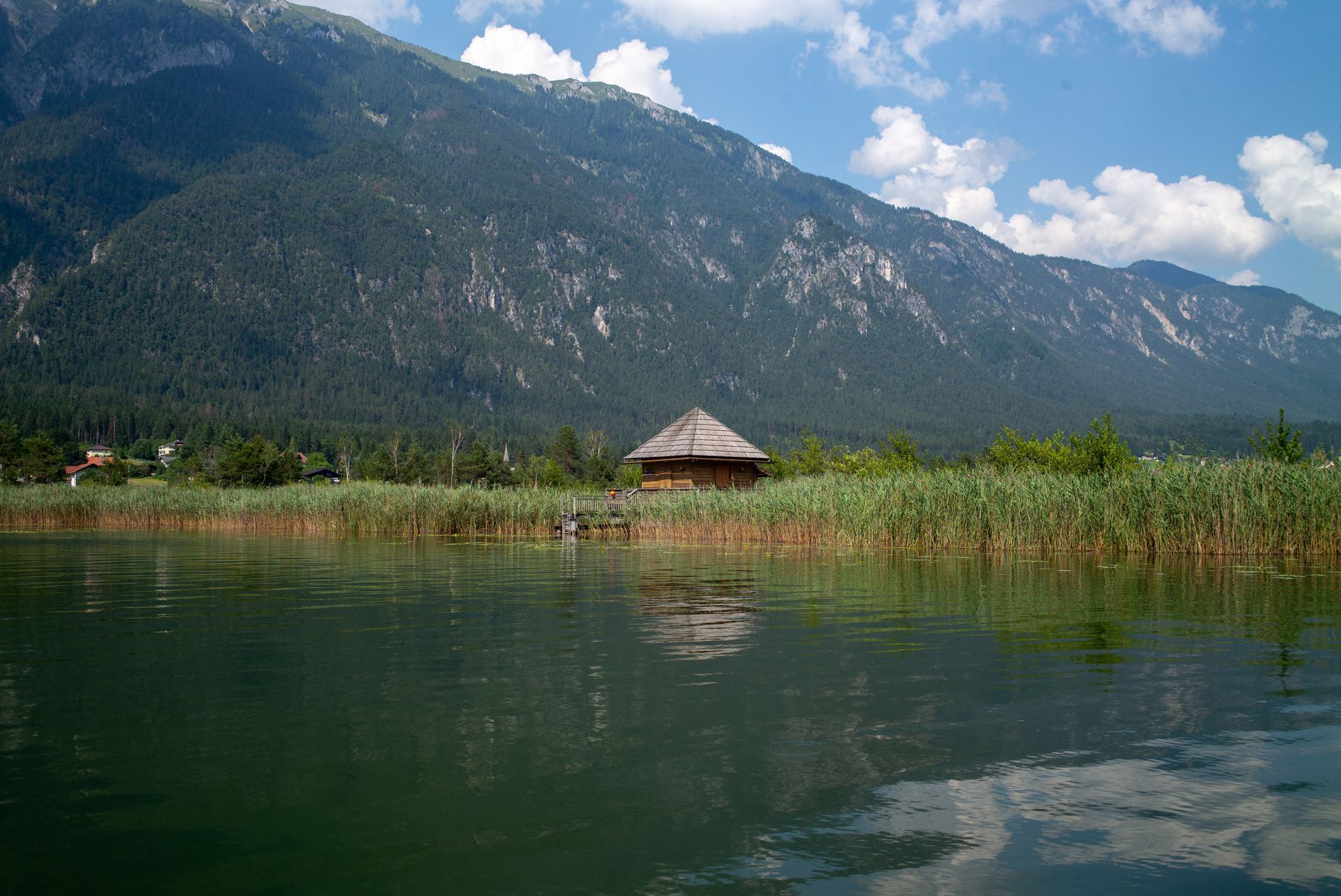 Einzigartiges Seechalet mitten im See umgeben von Schilf